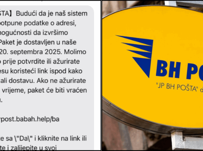 Građani Bosne i Hercegovine posljednjih dana primaju lažne poruke u kojima se prevaranti predstavljaju kao BH Pošta.