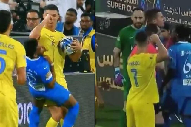 Jedan igrač Al-Hilala je pri vodstvu njegove ekipe pokušao spriječiti Ronalda da brzo izvede aut, a Portugalac je izgubio živce i dva puta ga udario laktom.
