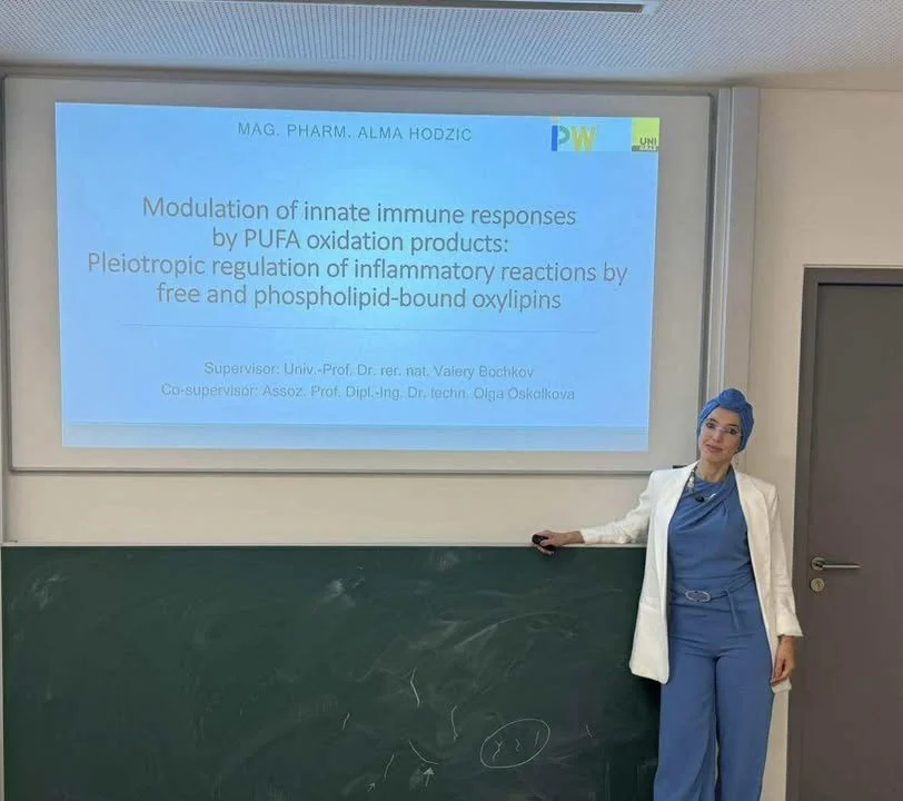 „Moje istraživanje je bilo usmjereno na razumijevanje kako oksidovani lipidi komuniciraju s ćelijama imunog sistema i kako ta komunikacija može biti ključna u pokretanju ili smirivanju upalnih procesa“, objašnjava Alma.