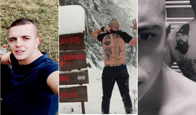 On je podigao majicu kako bi pokazao na leđima istetovirane četničke zločince Dražu Mihailovića i Momčila Đujića.