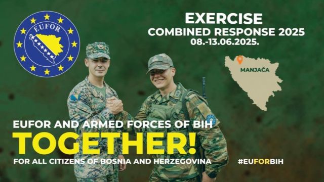 Oružane snage Bosne i Hercegovine (OSBiH) u saradnji sa Snagama Evropske unije (EUFOR) održat će multinacionalnu vojnu vježbu Kombinovani odgovor 25 od 8. do 13. juna u području Bihaća i Manjače.
