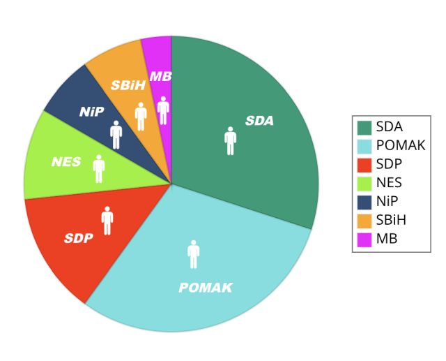 Raspored mandata: SDA – 9, POMAK – 9, SDP – 4, NES – 3, NIP – 2, SBIH – 2, MOŽEMO BOLJE – 1.