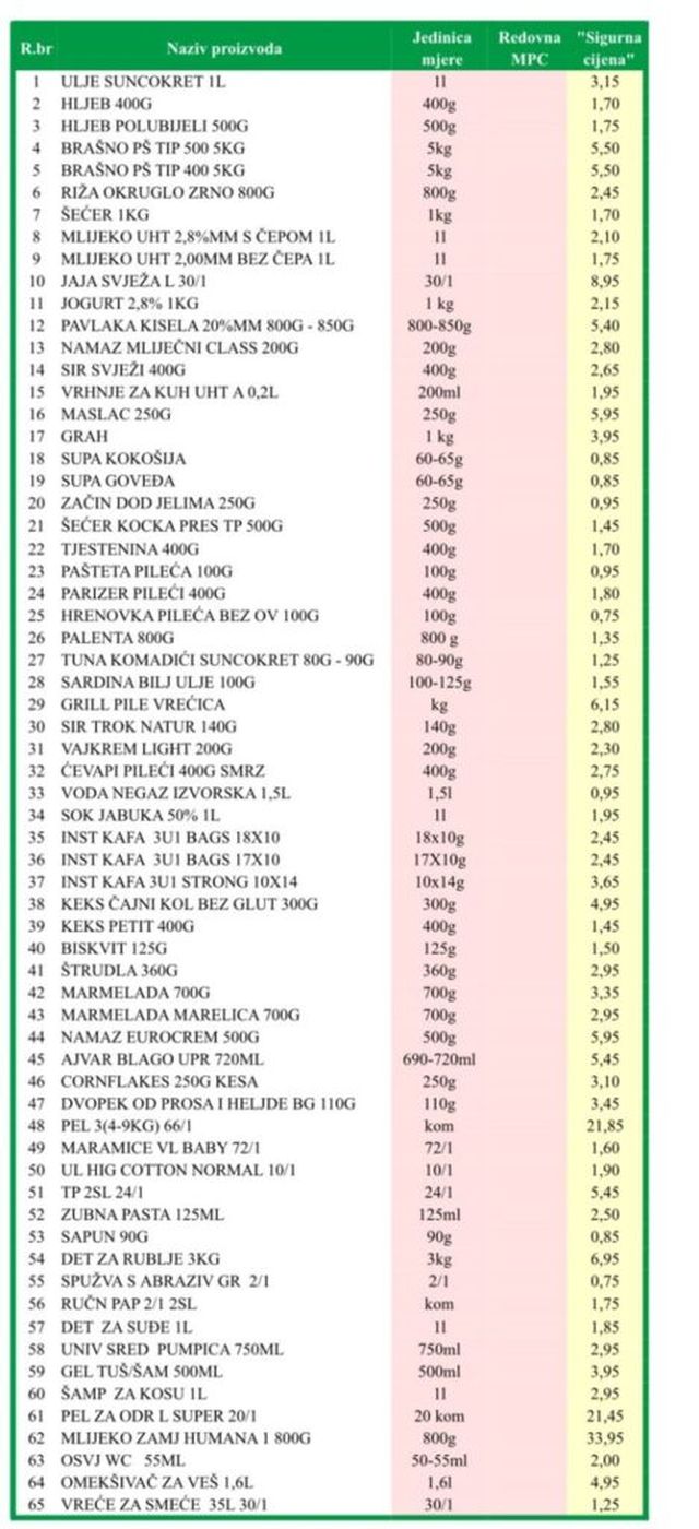 Kako kažu, cijene u spisku predstavljaju maksimalni iznos do kojeg se mogu kretati cijene tih proizvoda.