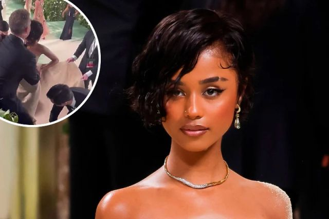 Tyla is lifted up the stairs at the #MetGala. pic.twitter.com/XYpkS41WMG