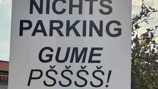 Ova kombinacija “njemačkog”, engleskog i lokalnog jezika u potpunosti je razumljiva svakom turisti – ne parkiraj ovdje, jer bi tvoje gume mogle da završe ispuhane!