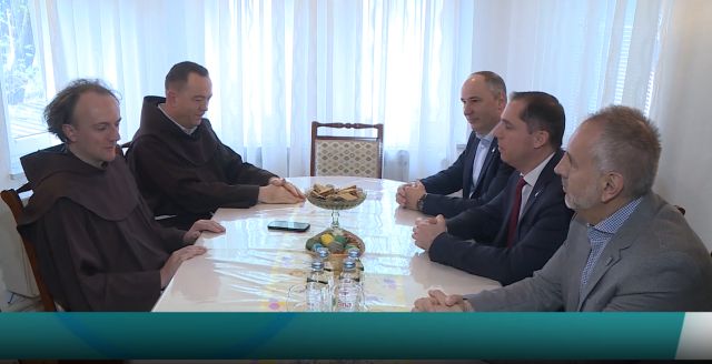 BIHAĆ, 18. aprila – Župnika bihaćkog fra Ivana Tučića i njegova vikara fra Ivana Lovrića uoči Uskrsa obradovali su svojom posjetom gradonačelnik Elvedin Sedić sa savjetnikom Franjom Jurićem i šefom Odsjeka za vjerske i mjesne zajednice Elmedinom Mehadžićem. Podijelili su s njima zajedničku radost i razgovarali o zajedničkim projektima Župe i Gradske uprave.