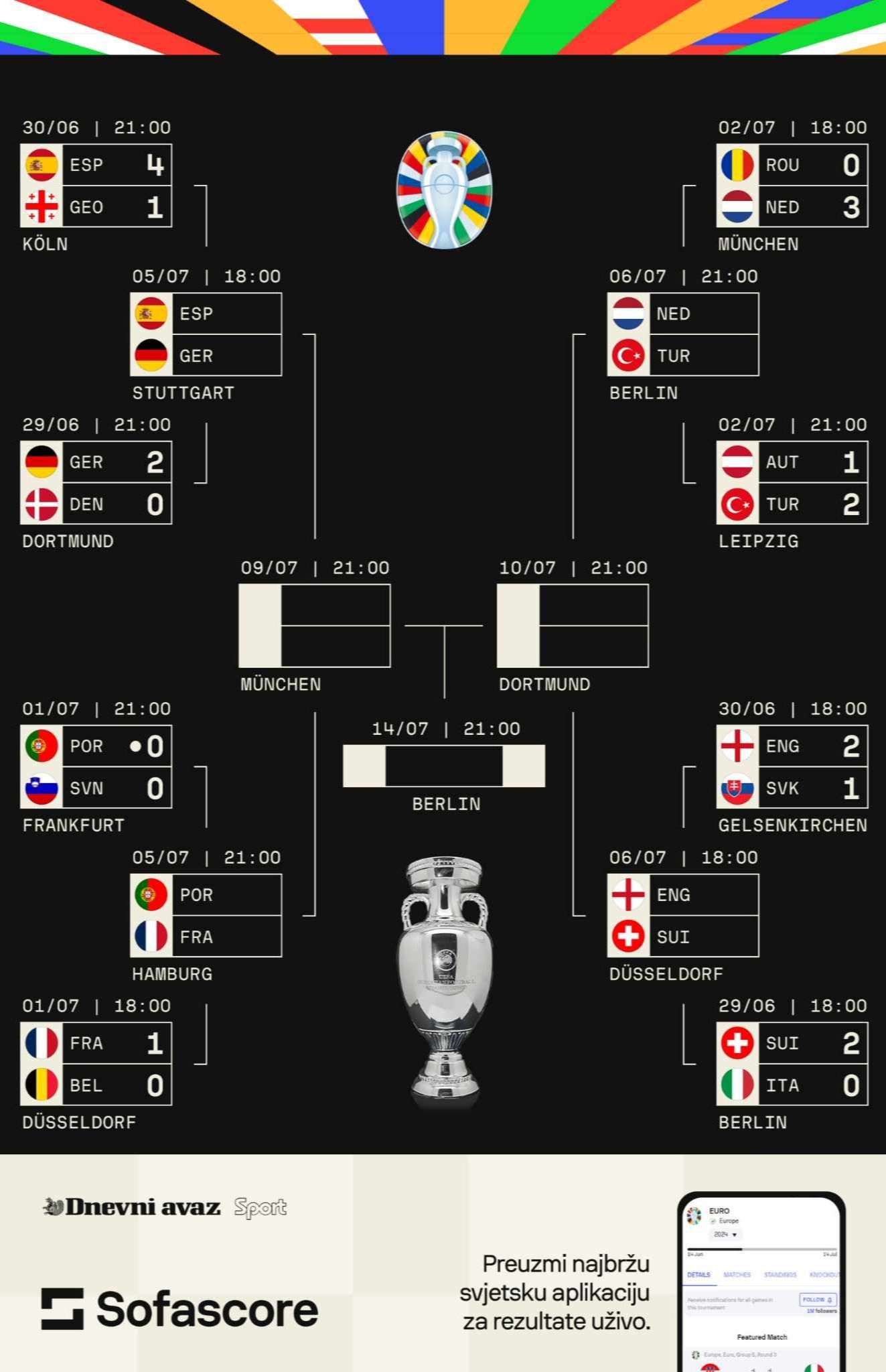Svi parovi četvrtfinala Evropskog prvenstva: