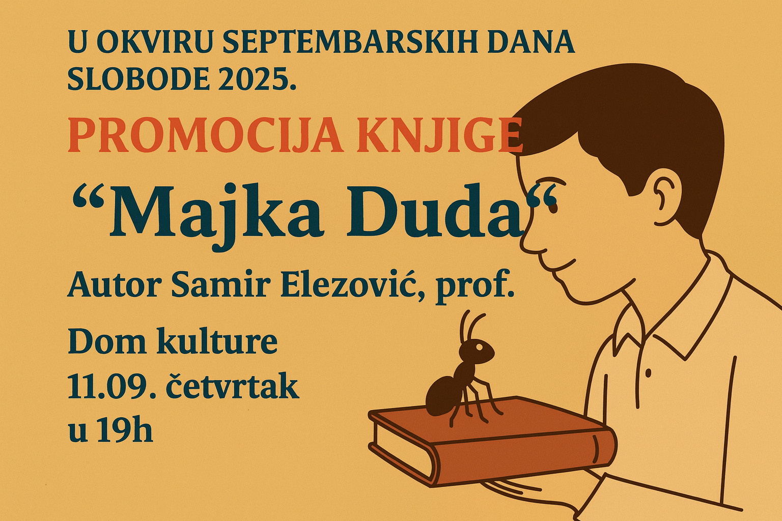 U okviru Septembarskih dana slobode 2025. godine, u četvrtak 11. septembra s početkom u 19 sati, u Domu kulture Bosanska Krupa biće održana promocija knjige „Majka Duda“, autora Samira Elezovića, profesora.
