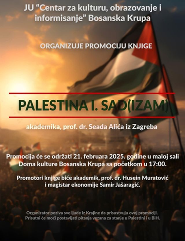 Pitanje Palestine, pitanje izraelskog genocida nad Palestincima, višedecenijskih zločina Izraela kako u Gazi tako i na Zapadnoj obali, sveopćoj neangažiranosti (prevashodno islamskih zemalja) da se ti zločini kojima svi svjedočimo zaustave, a kako je sinoć rečeno “mogu se zaustaviti”, ali i, ponovno, povijesne (ne)prilike i specifična politička i socijalna situacija u Bosni i Hercegovini – pitanja su koja zaokupljaju i građane Bosanske Krupe. Potvrdilo se to, između ostalog, aktivnim uključivanjem posjetilaca sinoćnje promocije u diskusiju koja je uslijedila nakon službenog dijela promocije knjige potvrđujući, ipak, da je knjiga “Palestina I – SADizam” uspjela u svome primarnom naumu, a to je pokrenuti razgovor i diskusiju o onom čemu svjedočimo, a o čemu se nerijetko pogrešno i političko-ideološki orkestrirano govori.