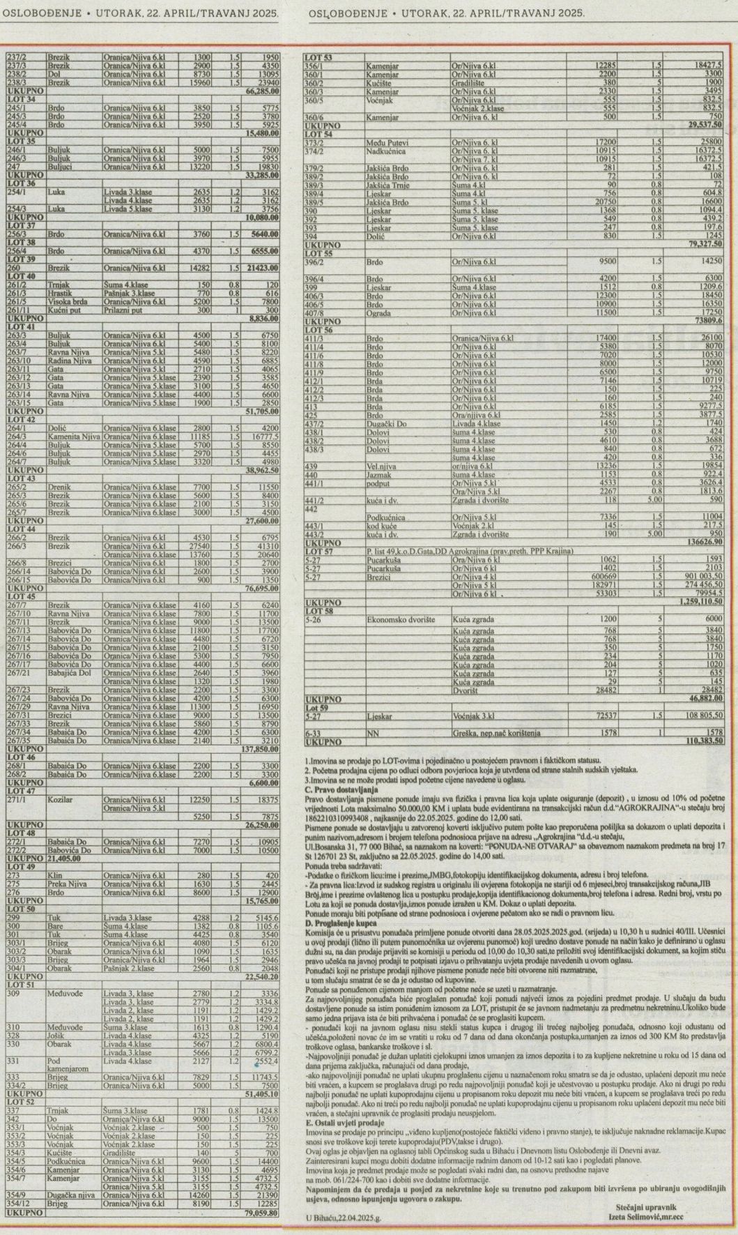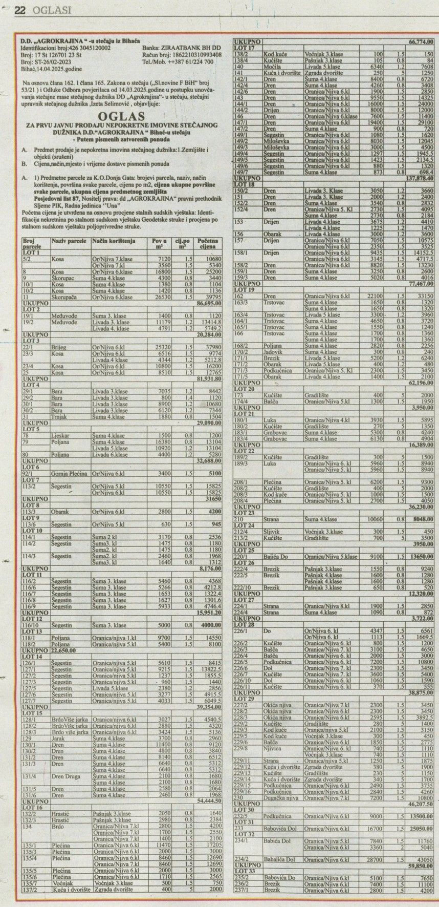 Detalje prodaje čitajte u oglasu koji donosimo u prilogu ovog teksta.