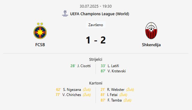 Nogometaši Škendije iz Sjeverne Makedonije izbacili su rumunski FCSB u drugom pretkolu Lige prvaka i to je najveća senzacija dosadašnjih kvalifikacija.