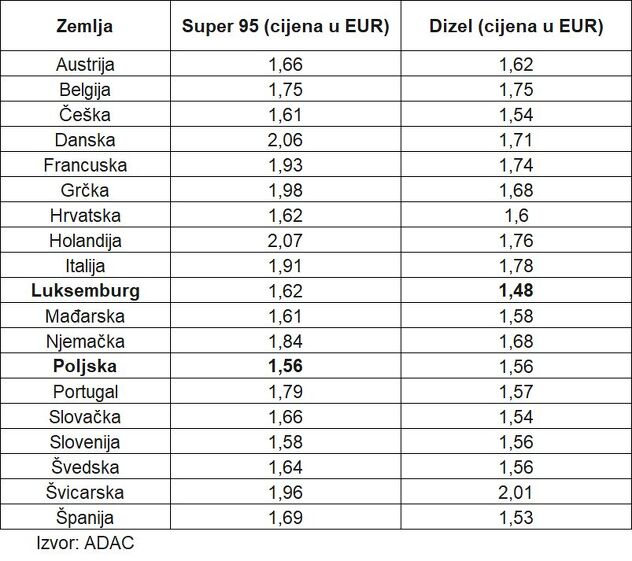 Ako putujte poslovno ili privatno na odmor u inostranstvo, vrijedi unaprijed planirati mjesta, pa čak i države ukoliko se nalaze na vašoj mapi putovanja gdje bi mogli uštedjeti na putnim troškovima. Kako tvrde Nijemci, benzin je najpovoljniji u Poljskoj, a dizel u Luksemburgu.