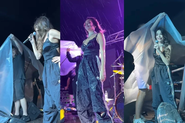 Pjevačica je na društvenim mrežama podijelila kako je to izgledalo, a u jednom trenutku se s članovima benda sakrila pod najlon odbijajući da prekine nastup.