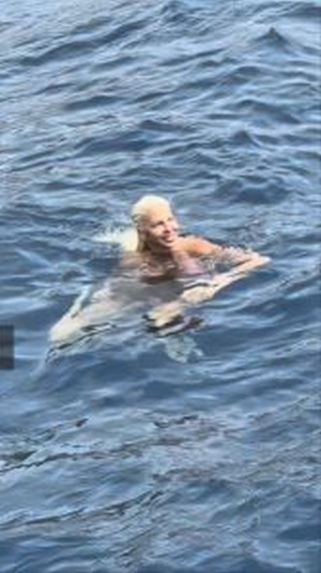 Slavljenica je nosila minijaturni bikini, dok su zajedno ispijali i nazdravljali šampanjcem i uživali u voću i slanim zanimacijama.