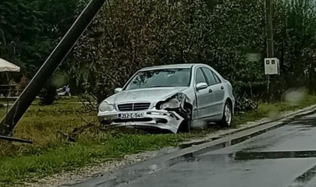 Kako saznajemo, automobil marke Mercedes zabio se u banderu pored puta.