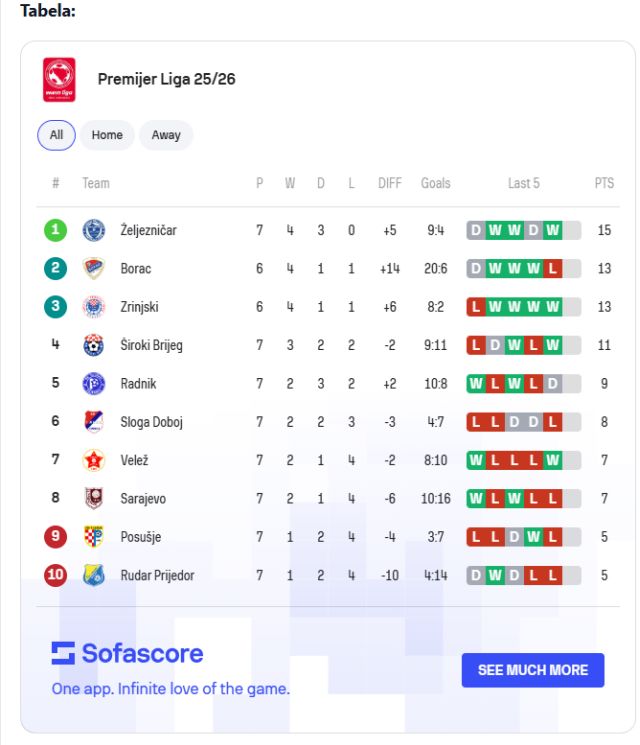 “Očekuje nas teška utakmica protiv rivala koji, kao i Velež, nije najbolje krenuo u sezonu. Gostujemo kvalitetnoj ekipi, ali spremni smo pružiti maksimum”, rekao je Sablić.