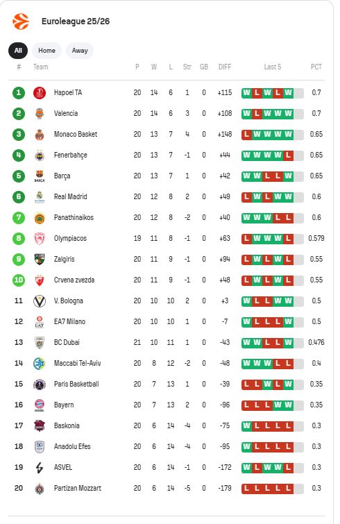 Podsjetimo, najbolju partiju u Euroligi Kamenjaš je do sada pružio u desetom kolu kada je protiv Crvene zvezde postigao 20 poena uz devet skokova.