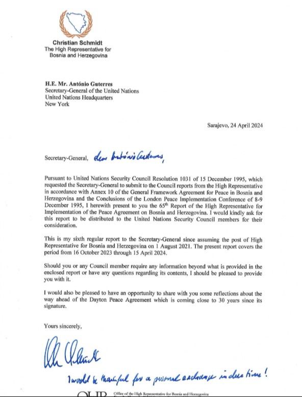 – Imajući to na umu, donio sam 26. marta 2024. godine Odluku o donošenju Zakona o izmjenama i dopunama Izbornog zakona BiH. Moja odluka donesena je kao odgovor na konstantni neuspjeh relevantnih vlasti u BiH da postignu dogovor o izmjenama Izbornog zakona BiH u skladu s međunarodnim normama i standardima. Ostavio sam otvorenu mogućnost za Parlamentarnu skupštinu BiH da donese vlastitu odluku što je duže moguće bez ometanja održavanja lokalnih izbora u oktobru 2024 – naveo je, između ostalog, visoki predstavnik Kristijan Šmit u svom izvještaju.