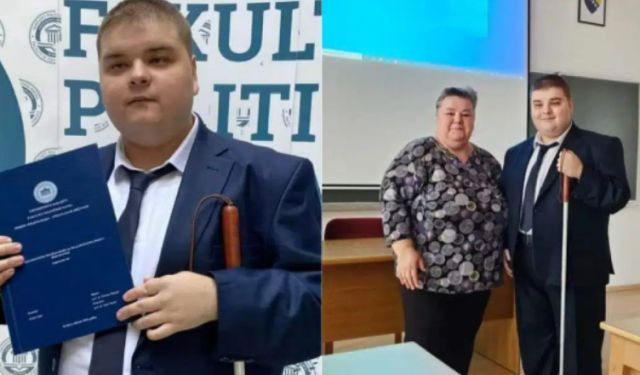 Slijep od rođenja, Emrah Tepić je magistrirao na Fakultetu političkih nauka i time ostvario svoju veliku želju.