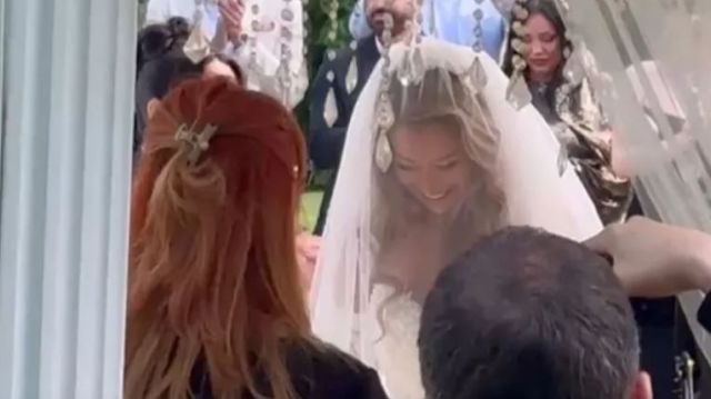 Tea Tairović je do oltara stigla u pratnji svog oca, obučena u bijelu vjenčanicu ukrašenu biserima, s velom preko glave.
