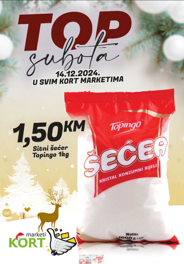 sitni šećer “Topingo”, kilogram , za samo 1,50KM.