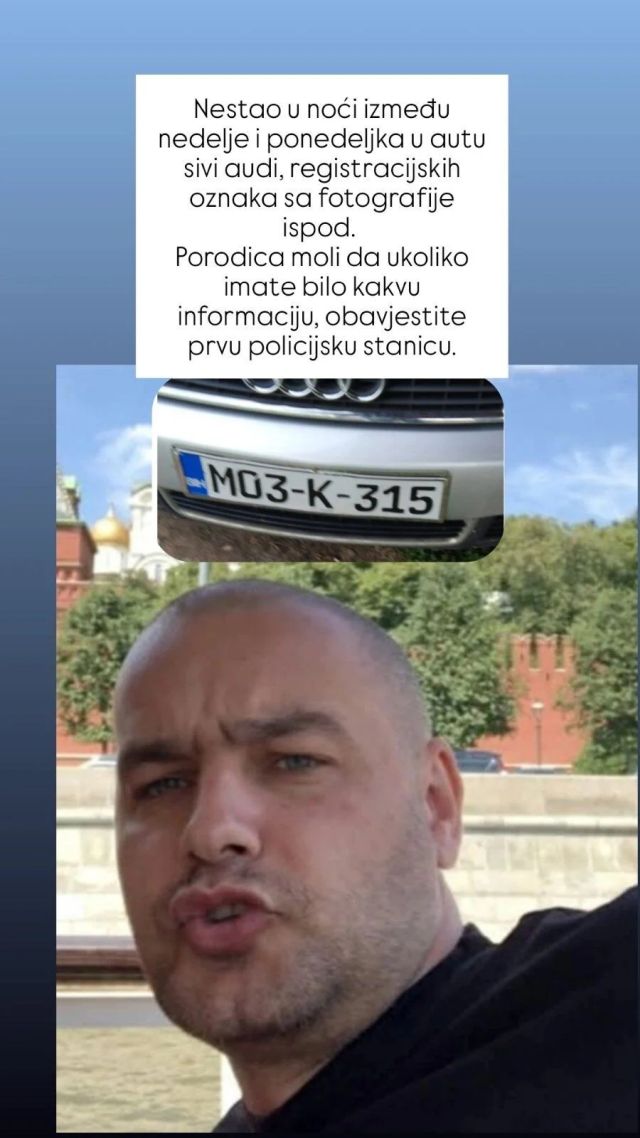Na društvenim mrežama objavljen je i apel porodice koja moli za bilo kakvu informaciju o muškarcu koji je nestao. Navedeno je da je u trenutku nestanka bio u sivom Audiju.