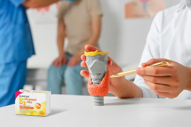 D3+K2: Skoro svaka druga osoba, pogotovo pacijenti sa oboljenjima štitne žlijezde imaju deficit vitamina D. Obzirom na pozitivno djelovanje protiv oboljenja štitne žlijezde, podizanje imuniteta i uticaj na značajan pad paratireoidnog hormona kod hiperparatireoidizma, svojim pacijentima preporučujem suplementaciju vitaminom D i to Eunova duo protect D3+K2.