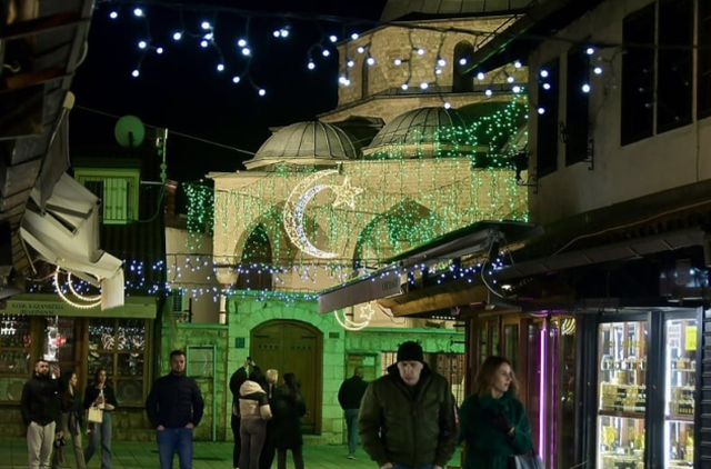 Kako to obično biva za posebne prilike – ulice Starog grada u Sarajevu ukrašene su, a ovaj put povodom mjeseca ramazana. Baščaršija je tako zasjala u svijetlećem ruhu – prekrivena lampicama u zelenoj i plavoj boji.