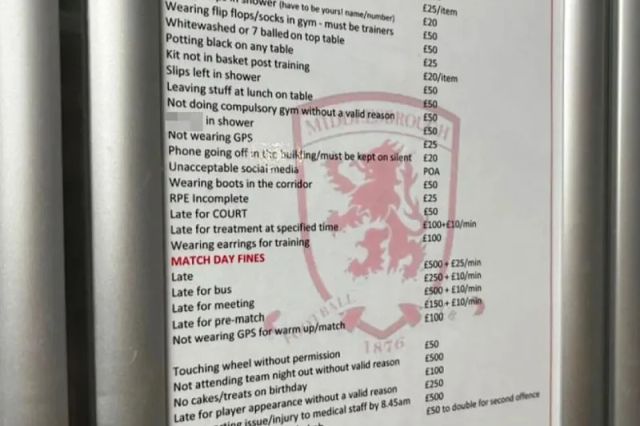 Nevjerovatna lista kazni s kojima se suočavaju nogometaši Middlesbrougha dospjela je na internet, a navijači su ostali zapanjeni.