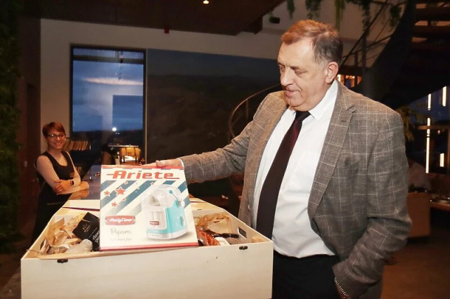 Na svom X nalogu, Dodik se pohvalio poklonom od Vučića, objavivši i fotografiju, a riječ je o aparatu za kokice.