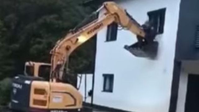 Video objavljen na društvenim mrežama pokazuje dramatično spašavanje ljudi iz bujice u Fojnici. Bager je podigao kašiku u koju su ušli ljudi.