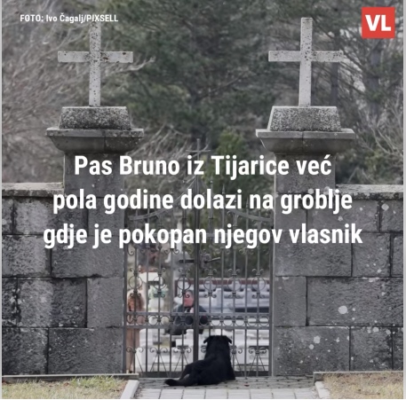 Zato već pola godine malenog Brunu možete vidjeti na ulicama Tijarice, mjestašca od 400-tinjak stanovnika nadomak Trilja, kako luta i traži vlasnika. On prolazi putevima kojima je ranije prolazio sa svojim vlasnikom, zadržava se na istim mjestima, ali Bruno uvijek i svakodnevno, gotovo nevjerovatno, dolazi i do groblja na kojem je njegov vlasnik pokopan.