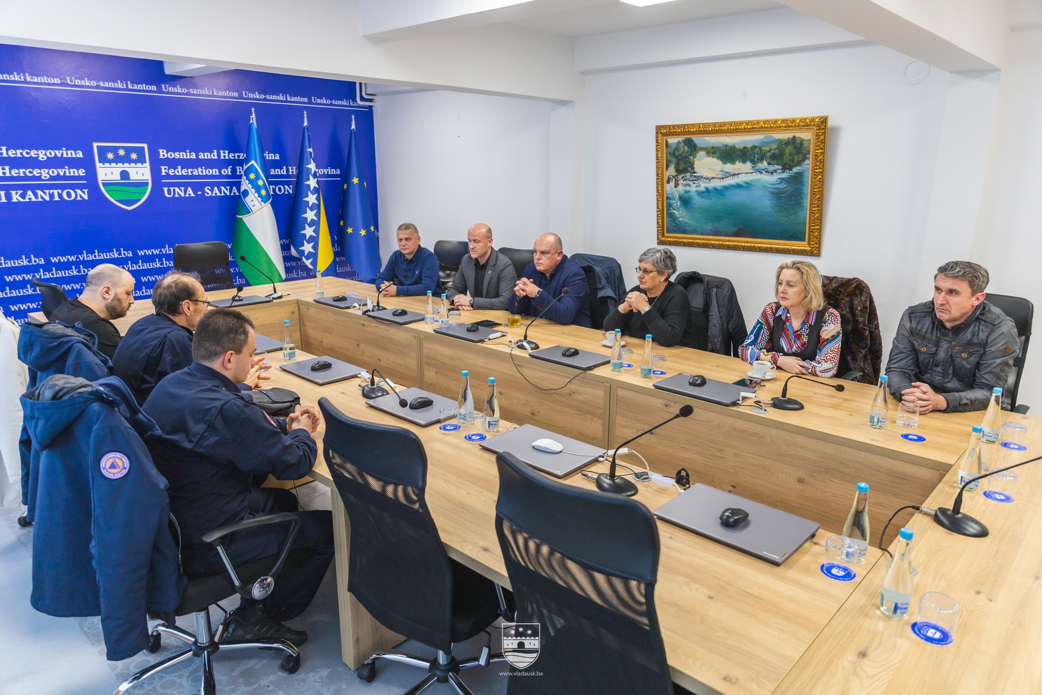 Premijer Unsko-sanskog kantona Mustafa Ružnić, koji ujedno obavlja funkciju komandanta Kantonalnog štaba Civilne zaštite, zajedno s ministrima unutrašnjih poslova i zdravstva Adnanom Habibijom i Šteficom Grgić, predsjedavajućim Skupštine USK Nisvetom Jusićem, zastupnicima Fatkom Kulenović i Sanilom Hasićem te direktorima zdravstvenih ustanova i Uprave civilne zaštite, razgovarao je s domaćinima o procedurama nabavke helikoptera, modelima finansiranja, održavanju letjelice i organizaciji helikopterske službe.