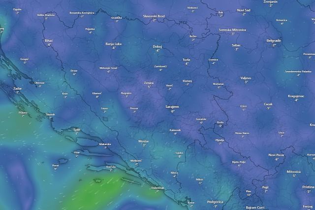 Tokom ponedjeljka i utorka puhat će umjeren do jak sjeverni i sjeveroistočni vjetar, dok će u Hercegovini, te jugozapadnim i zapadnim dijelovima Bosne, bura povremeno dostizati olujne udare.