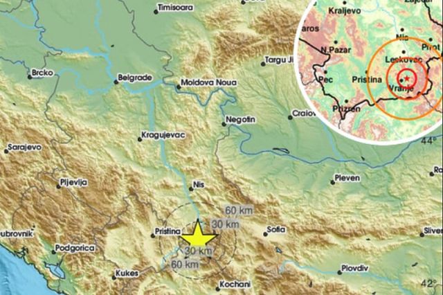 Jutros u 4:48 sati zemljotres jačine 3,7 stepeni po Rihterovoj skali zatresao je region Vranja u Srbiji.