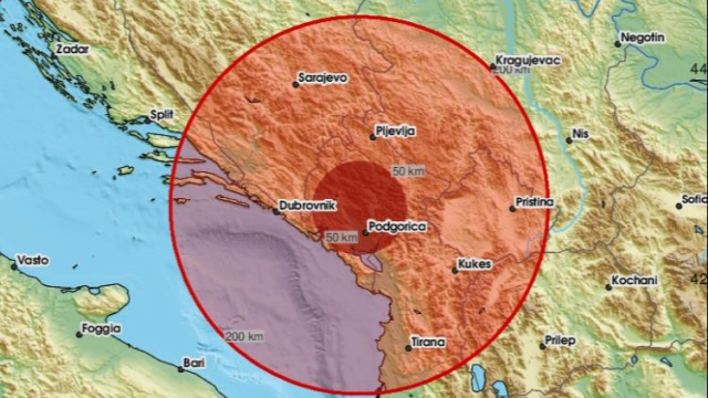 Epicentar je bio 34 kilometra od Podgorice i 12 kilometara od Kolašina.