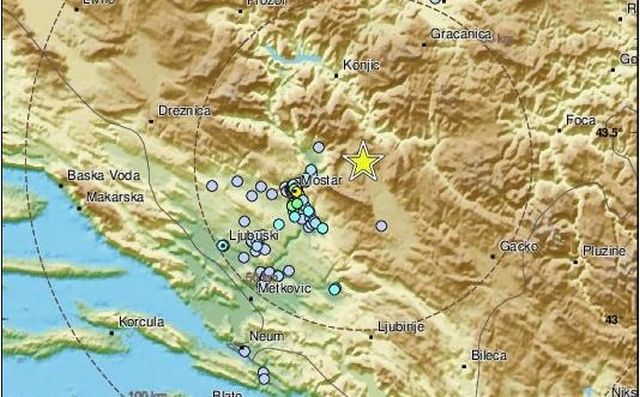 Epicentar je bio kod Jablanice, 38 kilometara od Mostara, a osjetio se i u Sarajevu.