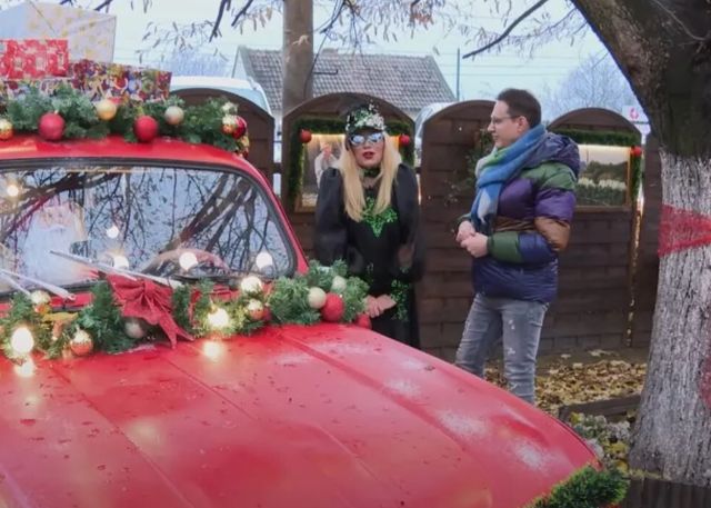 Pjevačica je pozirala u nesvakidašnjem crvenom automobilu, ukrašenom prazničnim svjetiljkama i detaljima.