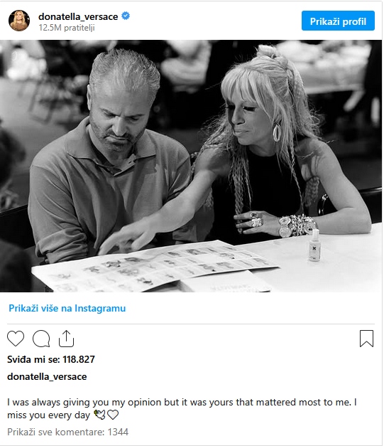 Njegova sestra Donatella Versace tužne godišnjice uz njihovu fotografiju prisjetila se na Instagramu.