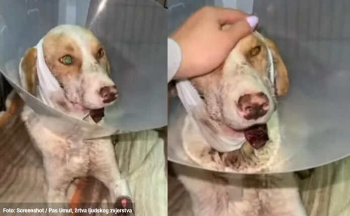 Pas Umut na snimku koji su objavili maše repom unatoč teškoj povredi koja mu je otrgnula donju vilicu. Ljudska zvjerstva nad životinjama u BiH su u porastu, a prije nekoliko dana policijska uprava Prijedor pokrenula istragu o osobama koje na video-snimku nastalom na području grada štapom tuku konja. Također, prije desetak dana u istom mjestu ubijena je kujica, a iza nje su ostala dva šteneta.